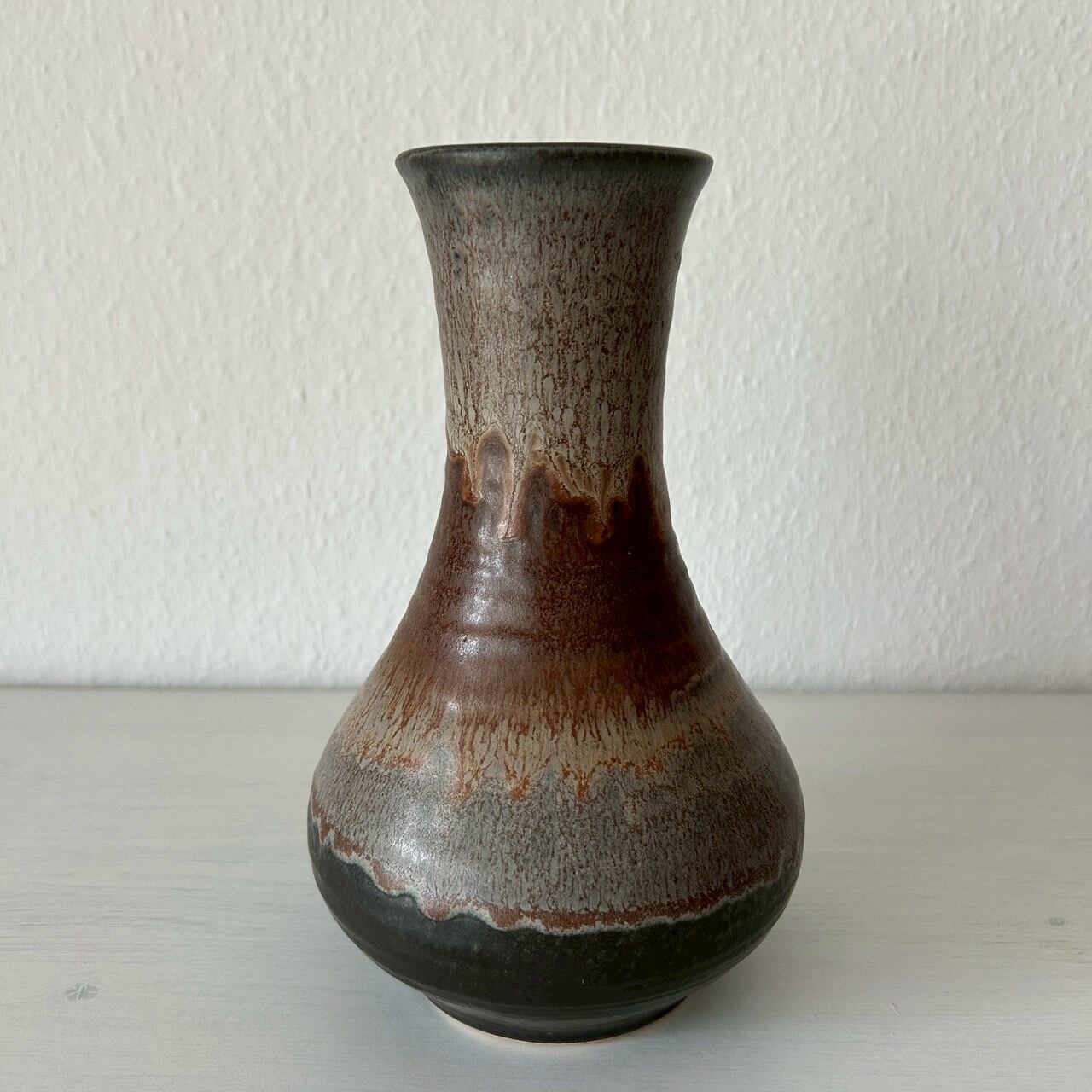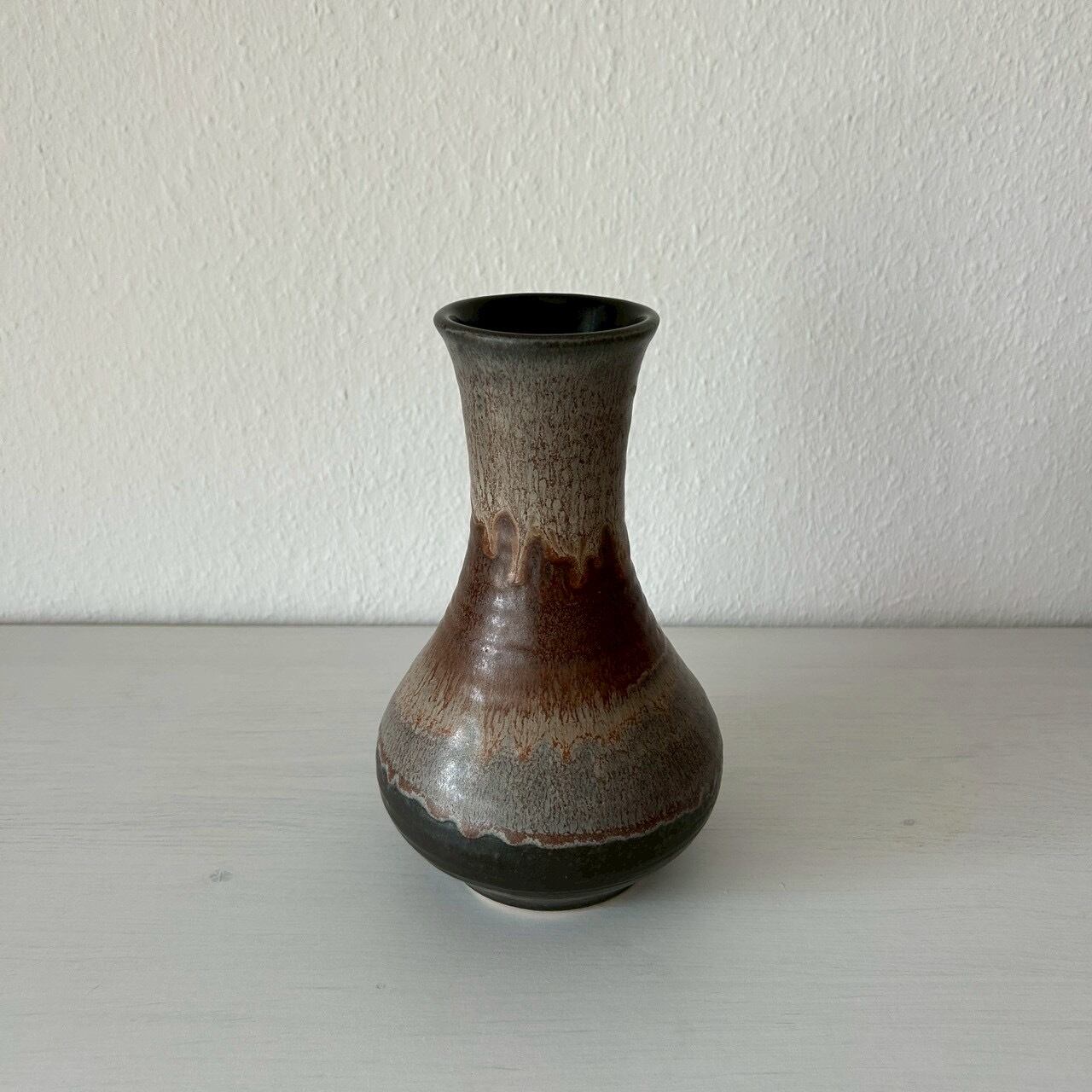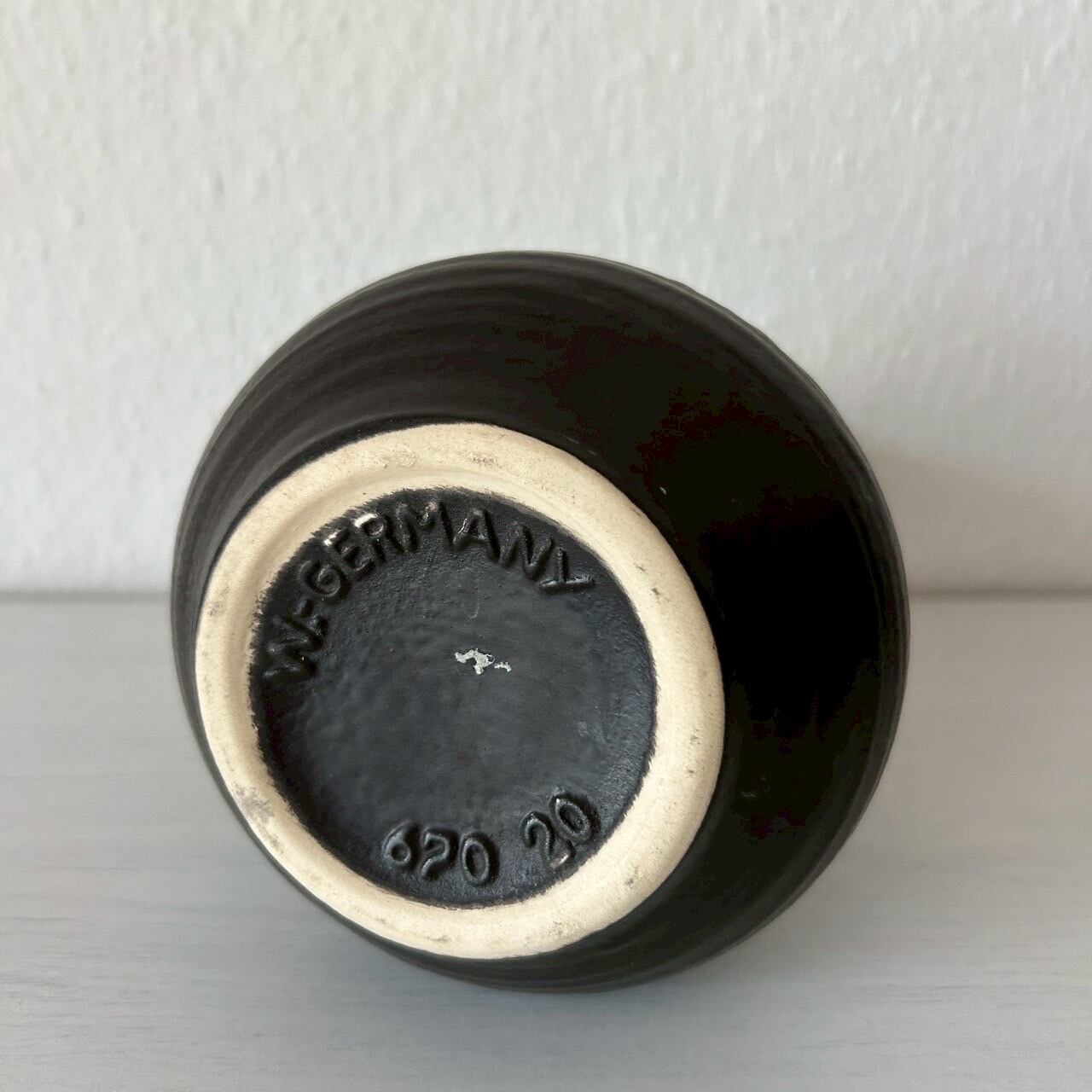 ミッドセンチュリー時代〜およそ1980年代頃までを中心にドイツ(大半は西ドイツ)で作られた、”Fat Lava”のフラワーベースです。当時の西ドイツでは”ファットラバ(脂肪/溶岩)”という独特な製法で多くの陶器が作られていました。その名の通り流れるごつごつした溶岩のようなデザインと鮮やかな色彩が特徴的です。幾何学模様、抽象的なパターン、大胆なフォルムなど、戦後の自由な造形美が表れていると言われています。
