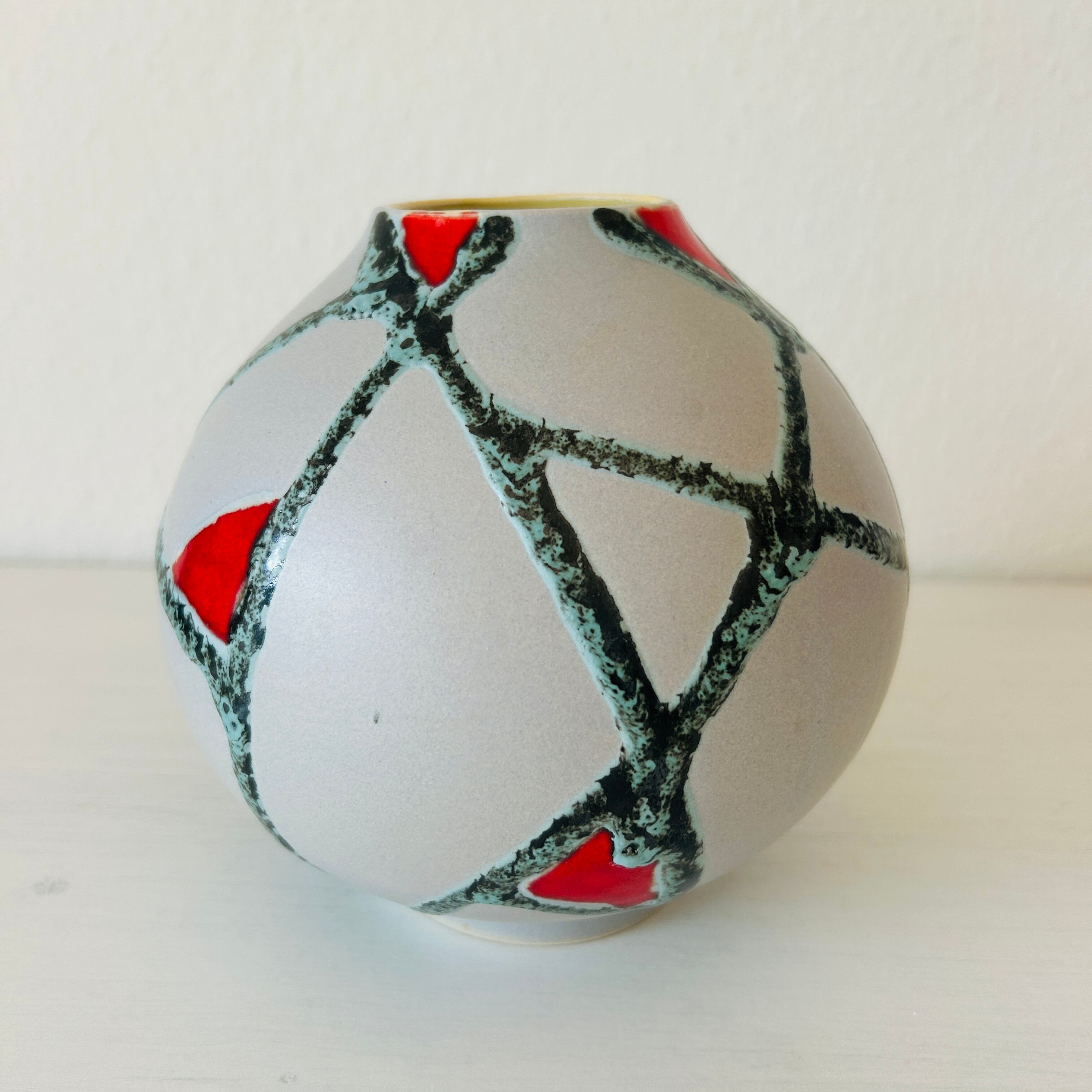 ぽってりとした丸みのあるフォルムに、有機的に走るラインと鮮やかなレッドのアクセントが印象的なFat Lavaらしい存在感のあるフラワーベースです。