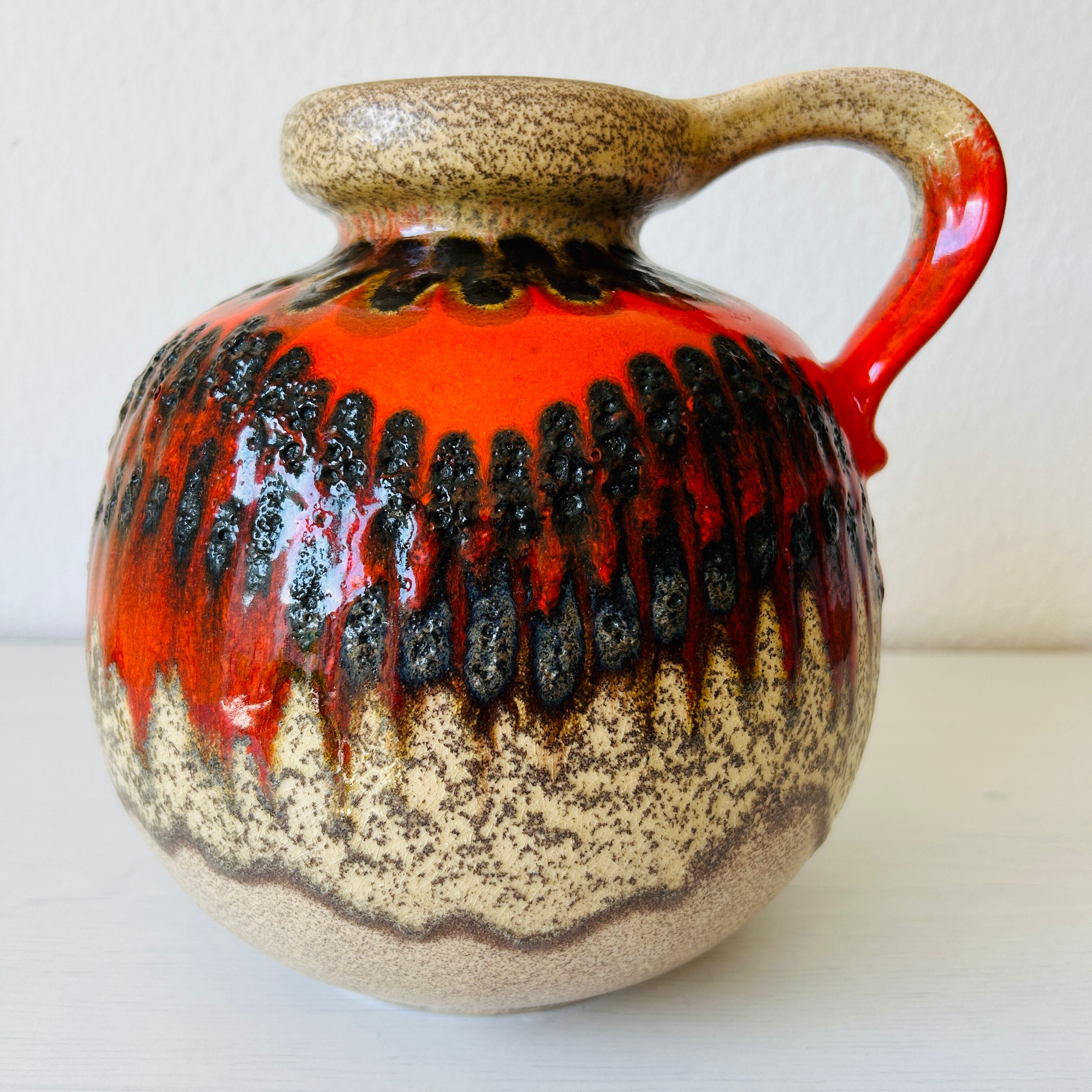 ミッドセンチュリー時代〜およそ1980年代頃までを中心にドイツ(大半は西ドイツ)で作られた、とても貴重で人気の高いFat Lavaのフラワーベースです。世界中にコレクターがいると言われていて、ここ数年日本でも見かけるようになりました。